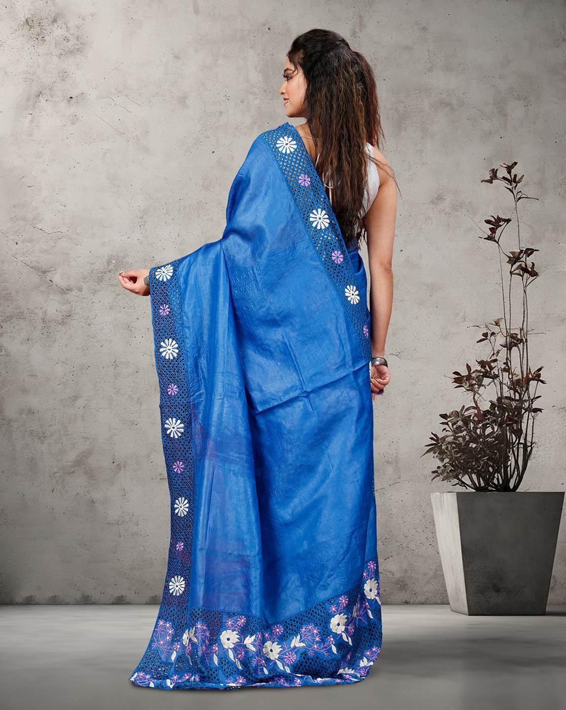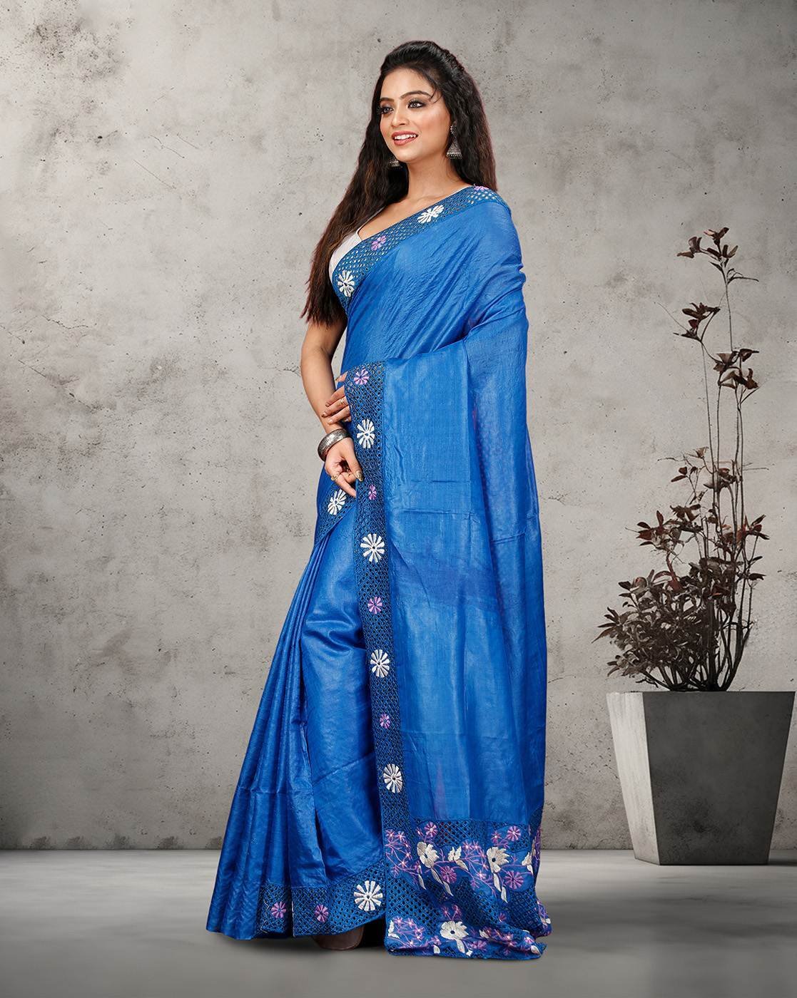 Hand Cutwork Pure Bhagalpur Tussar Saree