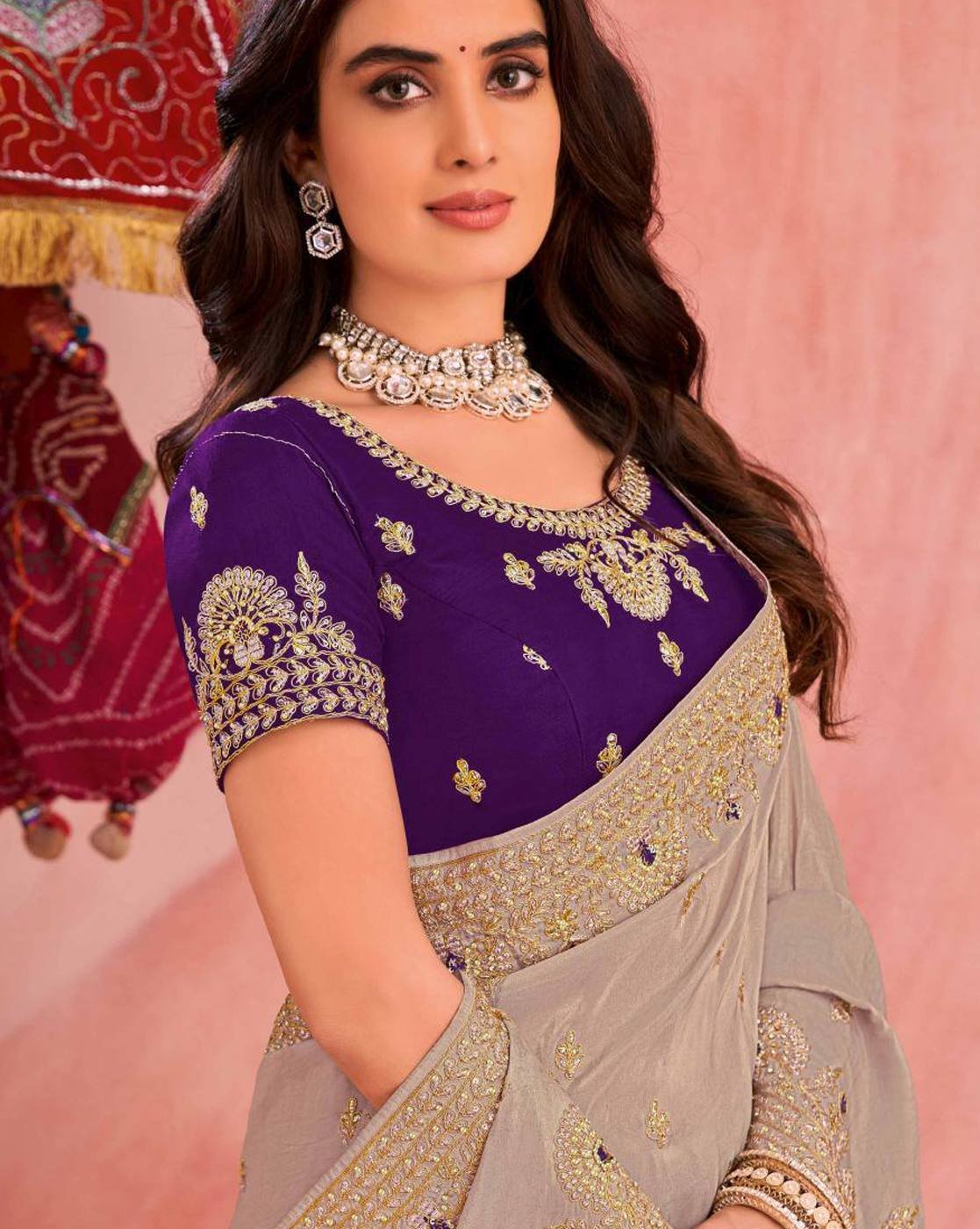 • The last image gives a detailed look of the blouse piece that comes with this saree (The model is wearing a blouse from our in-house wardrobe)